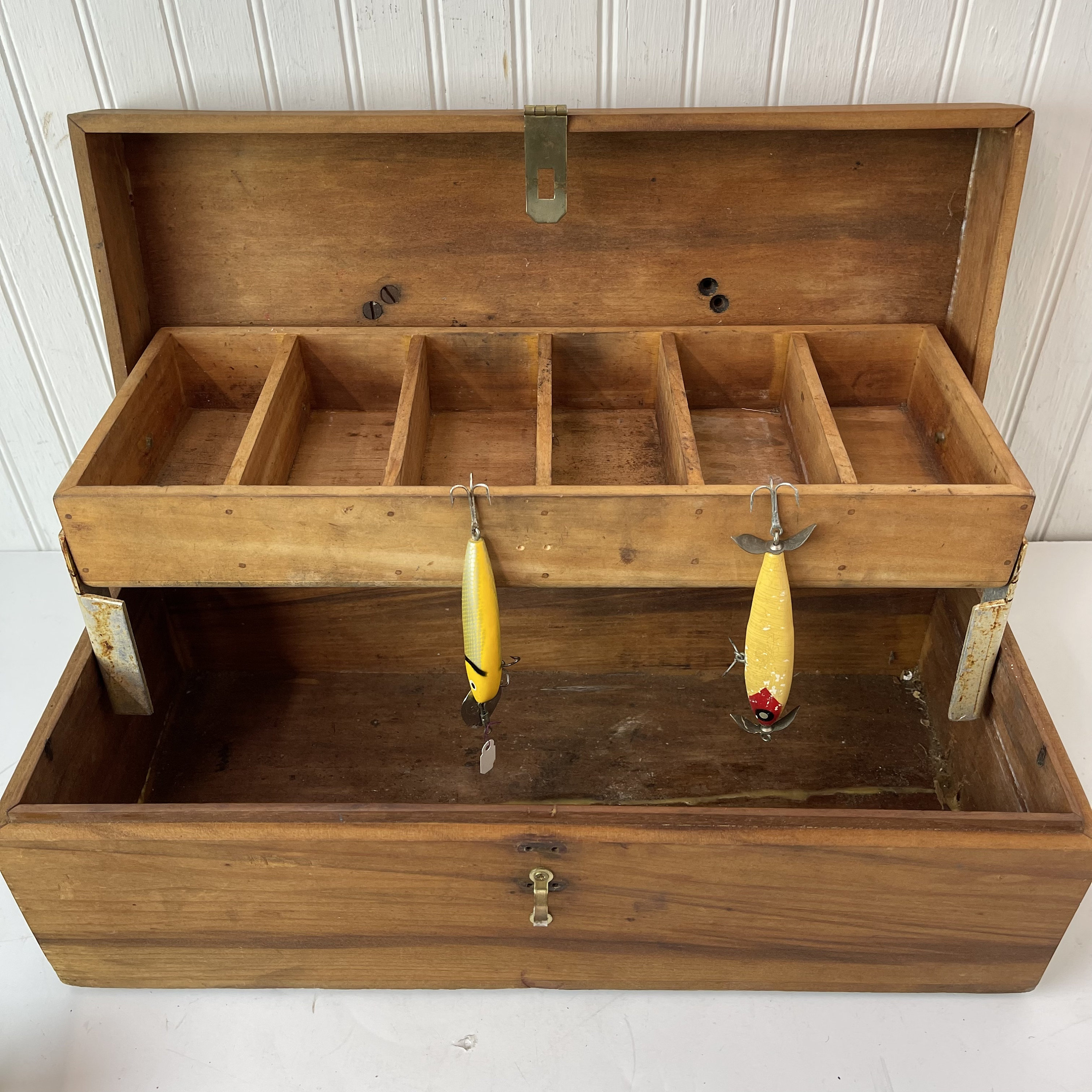 Vintage Ash Woodcraft Wooden Fishing Tackle Box 135454898